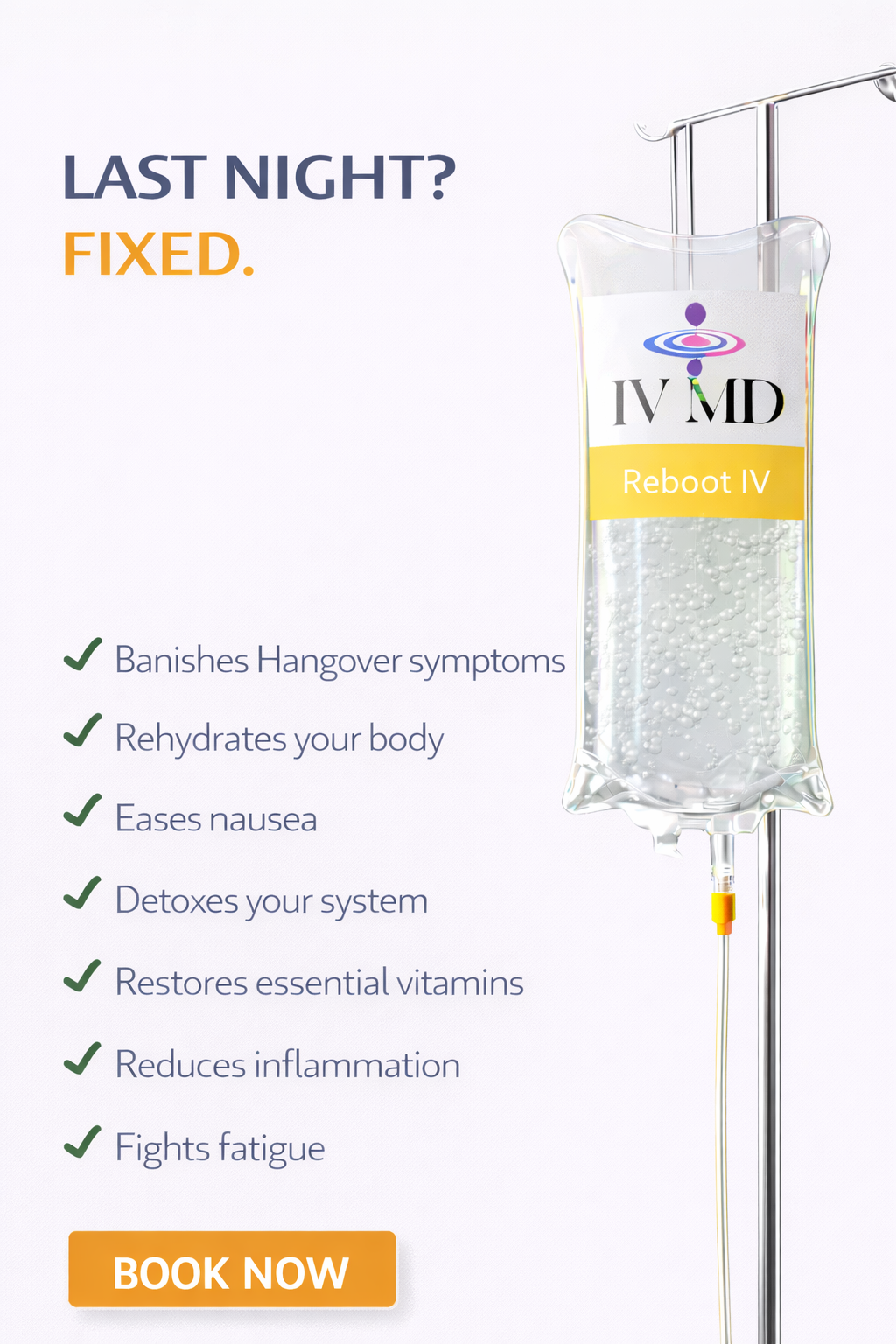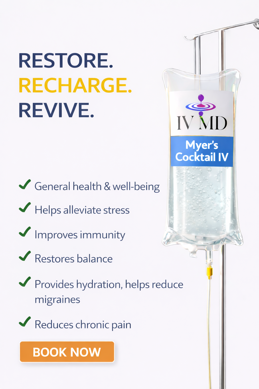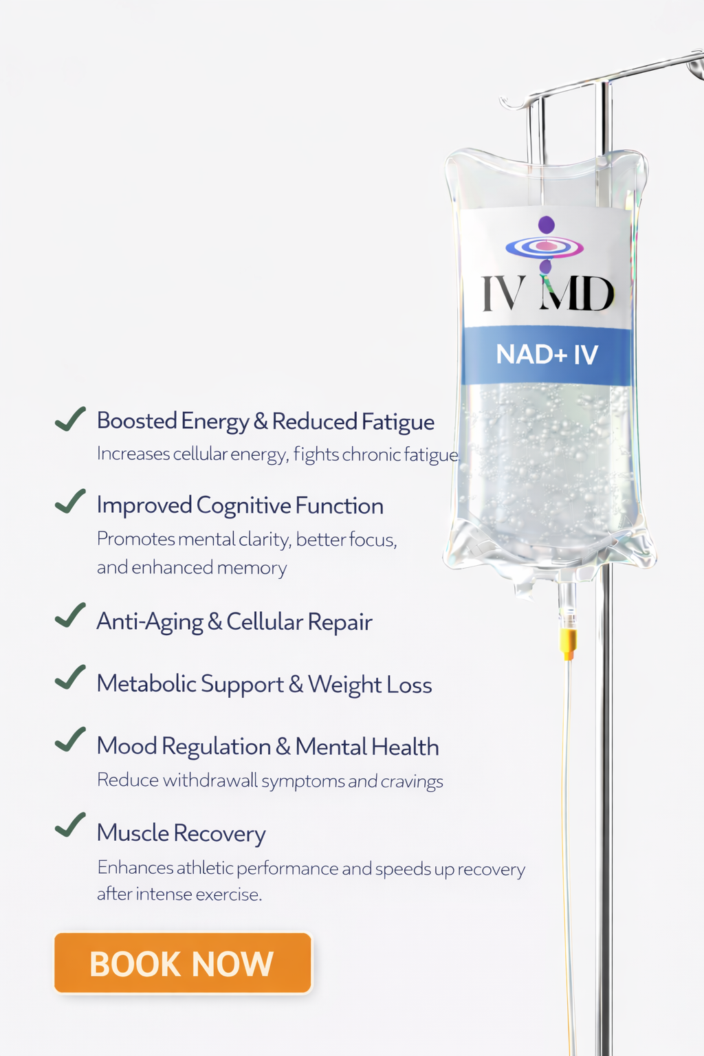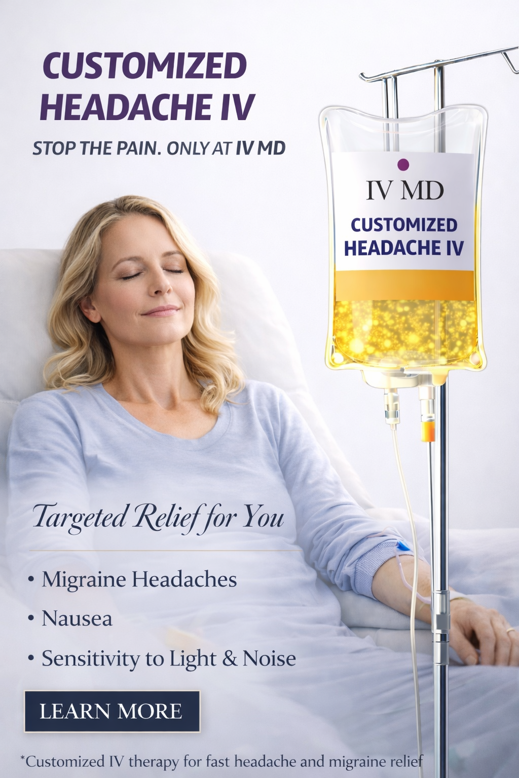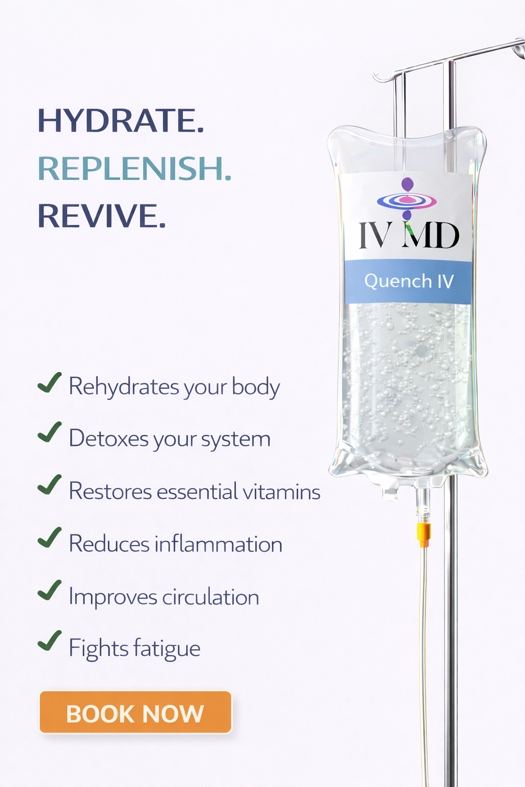 IV MD offers IV Hydration with a combination of vitamins, minerals, antioxidants, and amino acids for an array of targeted benefits. We offer Therapies for immune boosting, energy enhancement, detoxification, athletic recovery and aesthetic benefits like skin hydration, anti-aging and longevity.